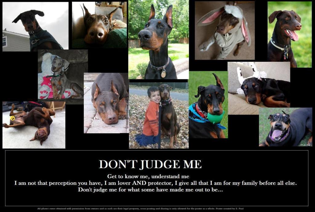 Breed prejudice isn't true, isn't fair, and doesn't get anybody anywhere. Dobermans are our pets. They're in our homes, they love our children (for things other than dinner). They are fun dogs, they are serious dogs, they are service dogs.